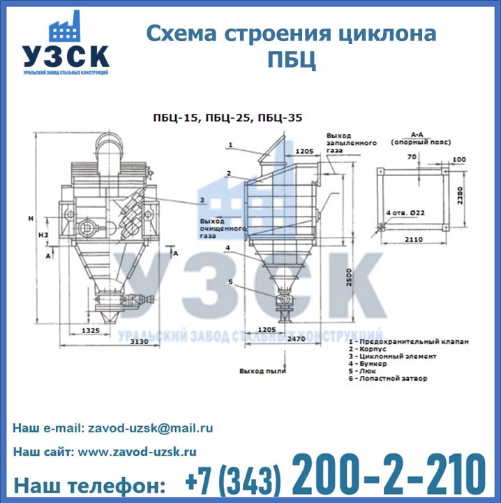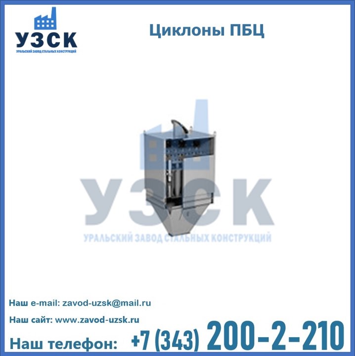 Завод «УЗСК» в Уральске предлагает приобрести циклоны ПБЦ и прочие устройства, полностью укомплектованные и готовые к эксплуатации. Мы гарантируем соответствие оборудования всем требованиям ГОСТ и ТУ, износостойкость и высокую производительность предлагаемого оборудования. Уральский Завод Стальных Конструкций изготавливает и продает надежное, эффективное и производительное оборудование, имеющее длительную гарантию и большой эксплуатационный ресурс. Если требуется изготовить циклон нестандартных размеров, то такой вариант выполнения заказа тоже предусмотрен, так как предприятие имеет собственные производственные площади и надежных поставщиков. На все поставляемое или производимое оборудование имеются чертежи и прочая техническая документация. Заказать и купить циклоны или прочее оборудование высокого качества и по доступной цене можно через наш сайт или по указанному в разделе «Контакты» телефону.