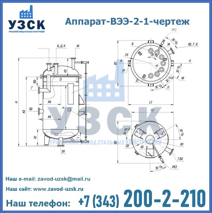 Емкостные аппараты ВЭЭ представляют вертикальную цилиндрическую емкость с эллиптическими днищами. В силу специфической формы сосуды выдерживают избыточное давление. Материалы изготовления внутренней полости не подвержены коррозии. Сосуд используется в Уральске для хранения сжиженных газов, жидкостей и как промежуточное звено технологической цепочки в химической, нефтехимической, целлюлозной промышленности.